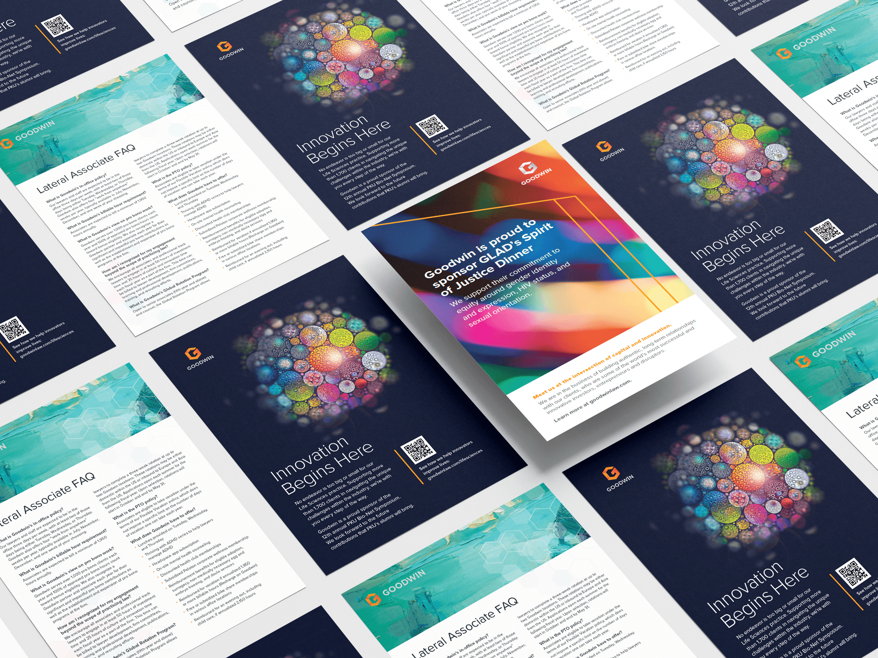 Demonstrating the firm's expertise, perspective, and industry standing, marketing efforts covered multiple touch points. Collateral included sponsorship ads, event signage, informational multi-pagers, postcards, service sheets, print leave behinds, and miscellaneous.
